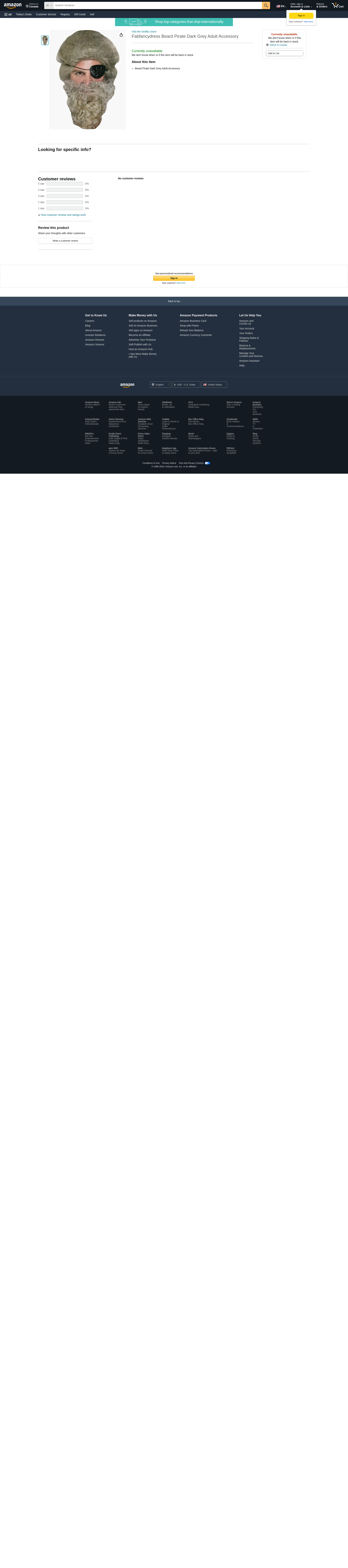 Fabfancydress Beard Pirate Dark Grey Adult Accessory