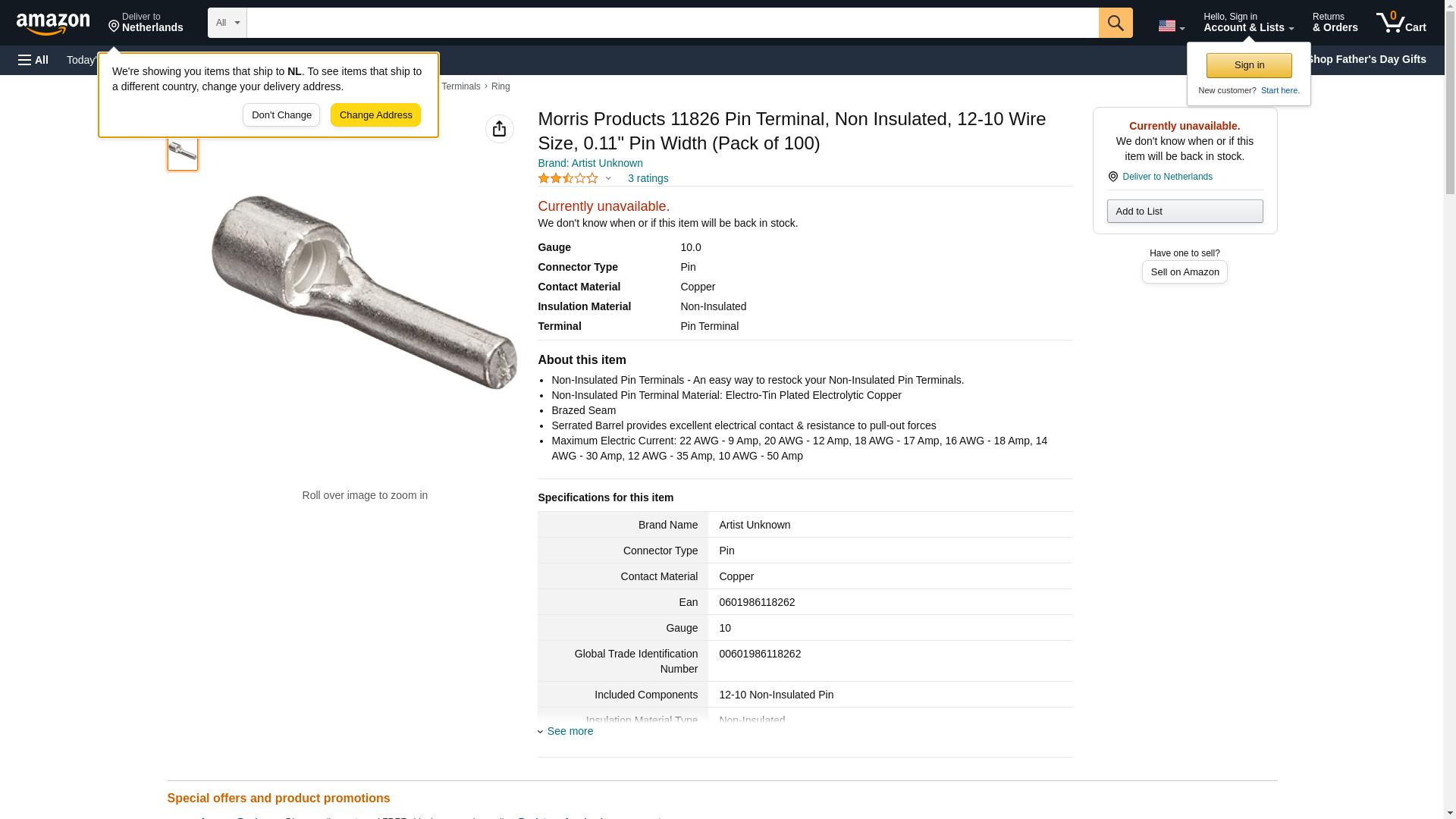 Morris 12-10 AWG 0.110mm Non-Insulated Pin Terminal 11826. ✅Morris authorized distributor ✅. ☎ (800) 884-5767 Mon-Fri 8:00 AM - 5:00 PM ET or order online 24/7