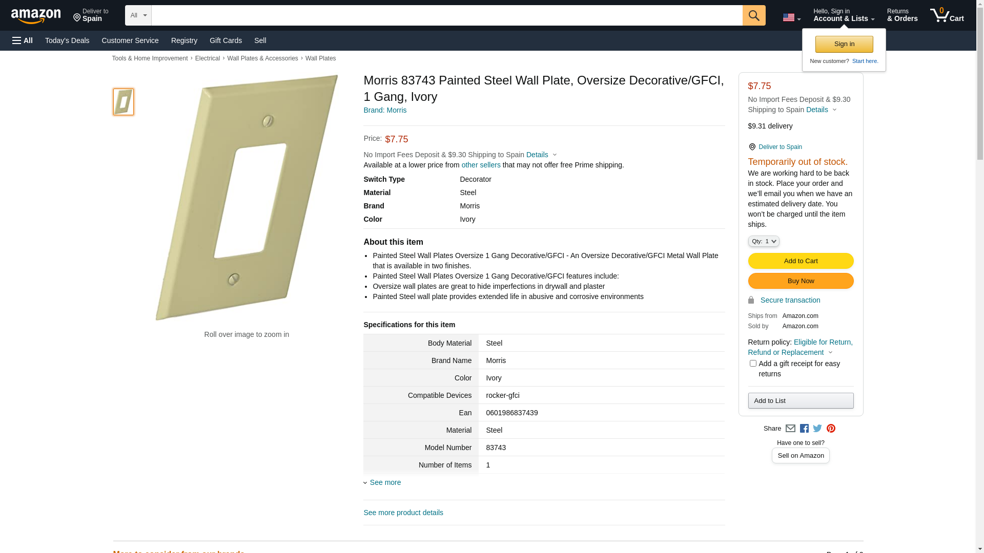 Morris 83743 Painted Steel Wall Plate, Oversize Decorative/GFCI, 1 Gang, Ivory