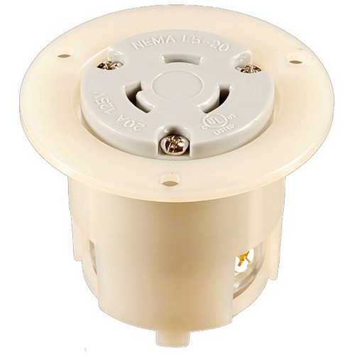 Recessed Twist Lock Female Receptacles 2 Pole 3 Wire 20A 125VAC Female Twist Lock Receptacles are Perfect for Generators and Other Equipment Power Applications Features. Commonly used with most generators. Rugged Nylon and Polycarbonate Construction resists impact abrasion sunlight chemicals. Grooved Housing for enhanced grip. All contacts are solid onepiece brass for superior conductivity and reduced heat rise. Heavy duty power contacts set in deep pockets to resist damage. Heavy duty brass combo head terminal screws. Clear terminal chamber allows for visual inspection of terminals. Cord strain relief and rubber grommet to seal from environment. Includes grounding screwSpecifications. Type Male. Amps 20. Volts 125. Nema Number L520C