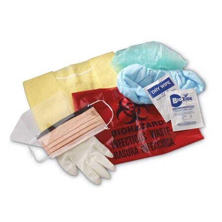 | Feature | Price For: Each Includes: 1 Long Sleeve Gown, 1 Pair Latex Free Gloves, 1 Bzk Towelette, 1 Biohazard Bag, 1 Mask with Shield, 1 Pair Shoe Covers, 1 Bouffant Cap Color: Red Item: Biohazard Personal Protection Kit Container Type: Biohazard Bag Country of Origin (subject to change): United States |