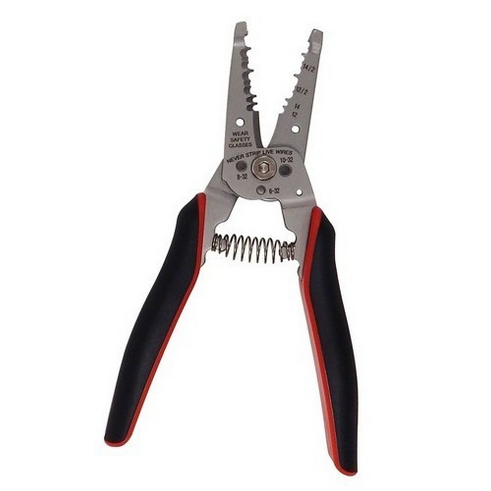 7-1/4" 12/2 and 14/2 NM Cable Cable Stripper/Cutter Features: 12/2 and 14/2 stripping slots quickly remove outer jacket of Type NM-B non-metallic sheathed cable Precision ground stripping holes easily remove insulation on 12 and 14 AWG lead wires Bolt cutter 6-32, 8-32, 10-32 Copper wire cutter has precision shear-type blade Strong gripping serrated nose for easy bending and pulling of wires Narrow nose fits into tight places Holes in jaw for quick wire looping and bending Spring-loaded for self-opening action Opening stop prevents spring from disengaging Stainless steel body for maximum corrosion resistance Laser-etched markings for high visibility Ergonomic, cushioned handles for ultimate comfort and control