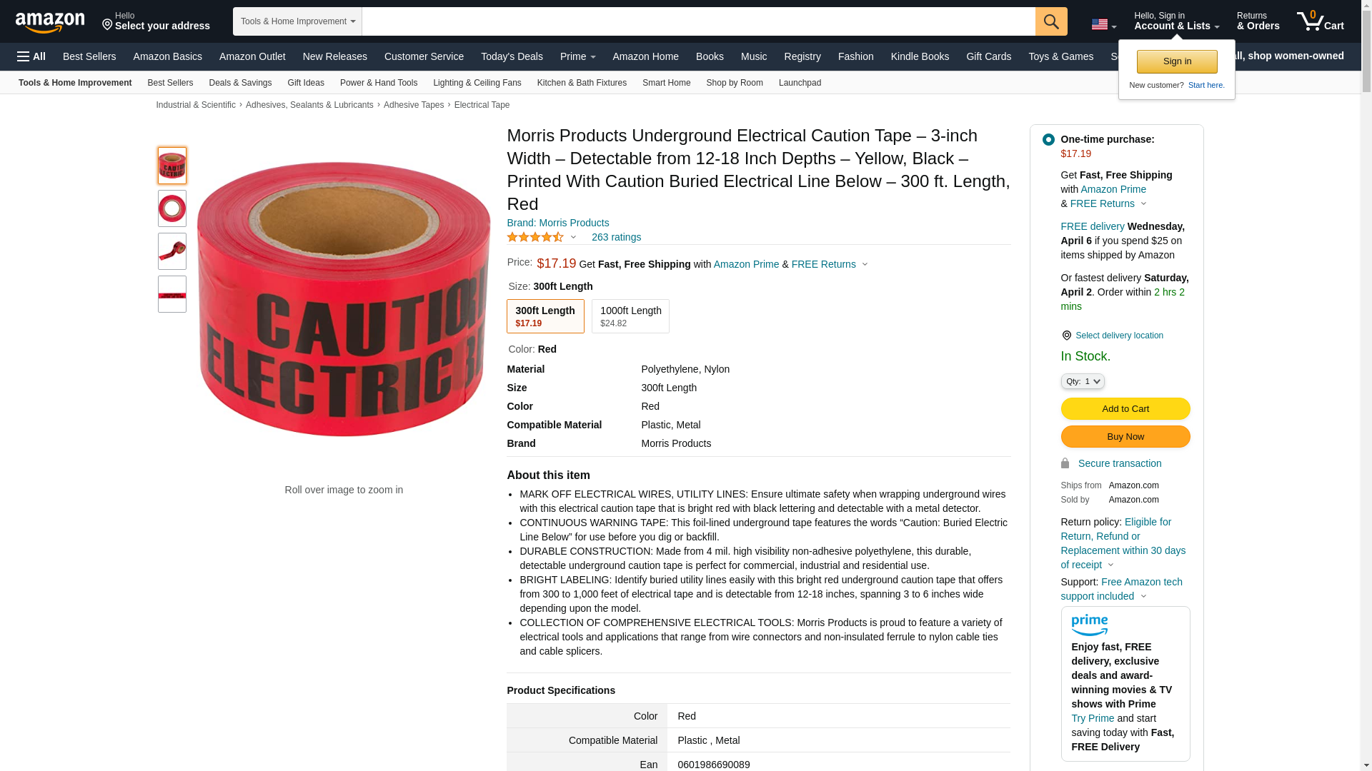 Morris Products 69008 Underground Tape, Printed With Caution Buried Electric Line Below, Red, 3" Width, 300ft Length....
