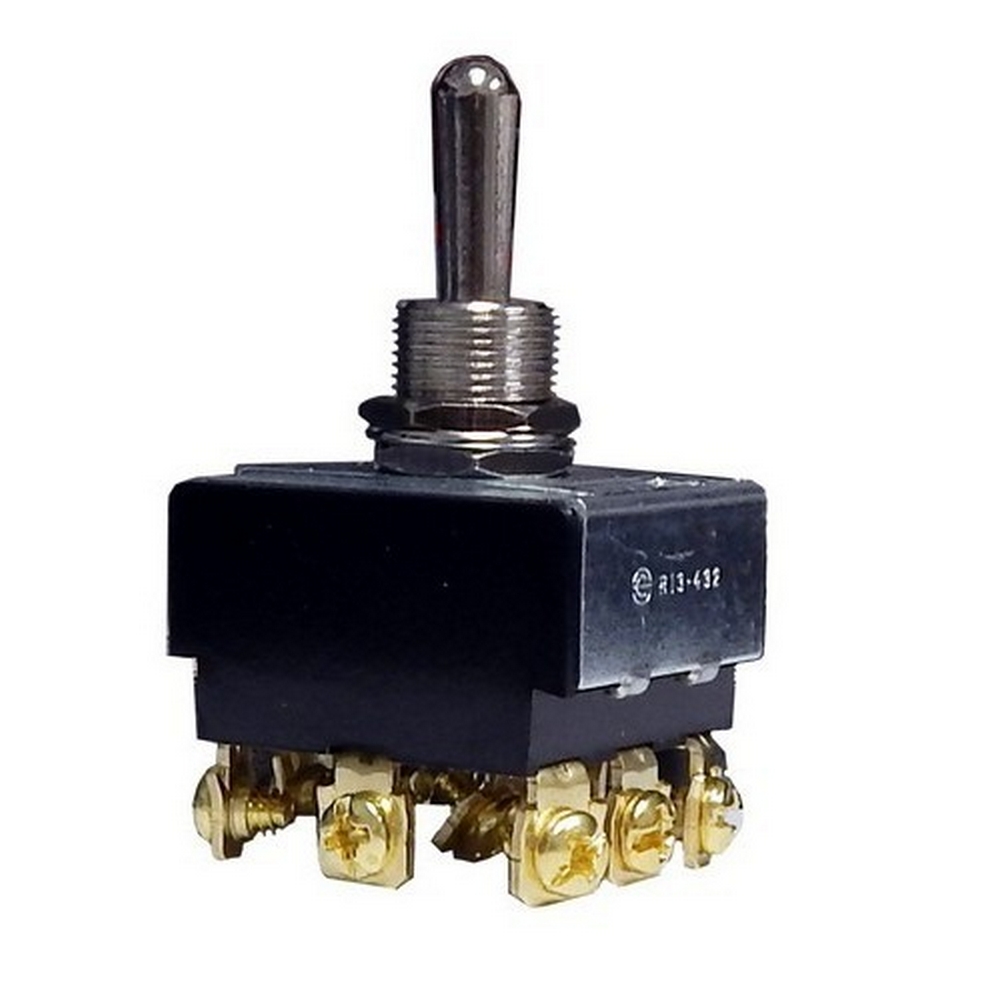 | Feature | Heavy Duty 3 Pole Toggle Switch 3PDT On-Off-On Screw Terminals - Brass and Nickel plated Multi-Pole Toggle Switches are extra durable. |