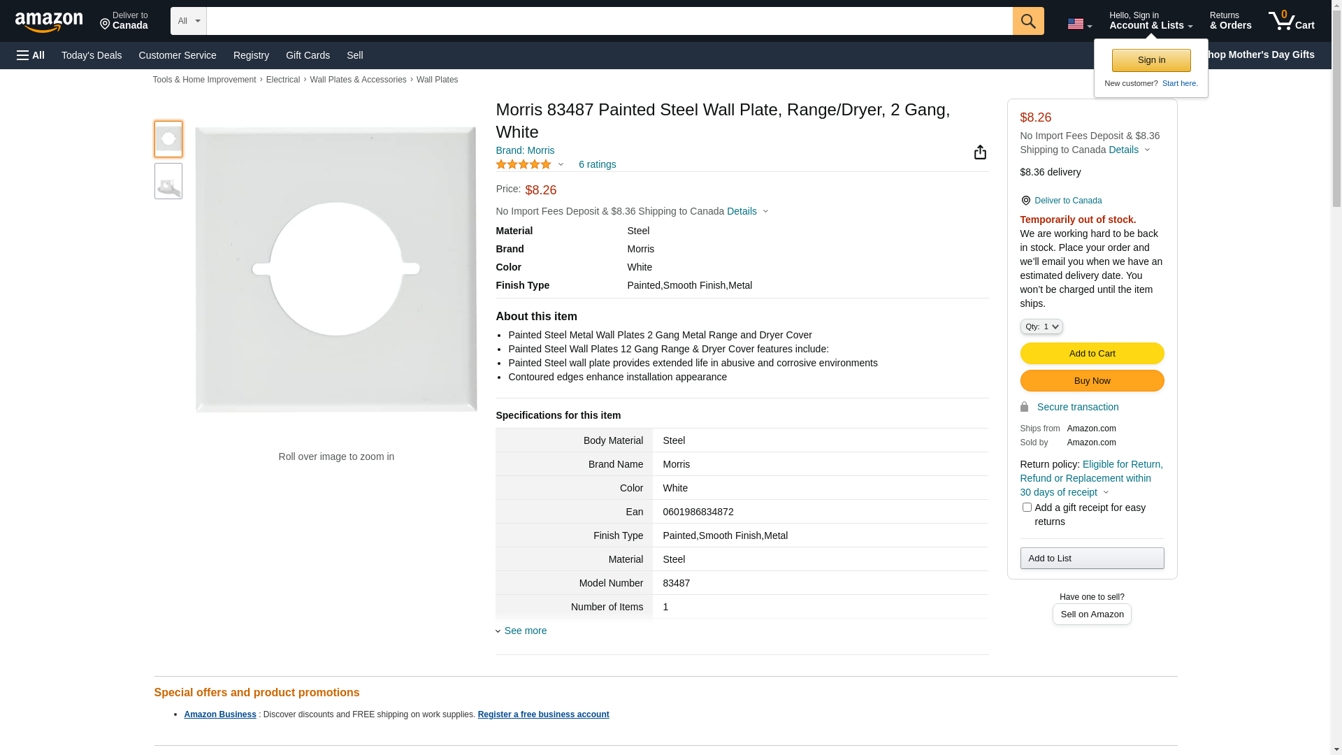 Morris 83487 Painted Steel Wall Plate, Range/Dryer, 2 Gang, White