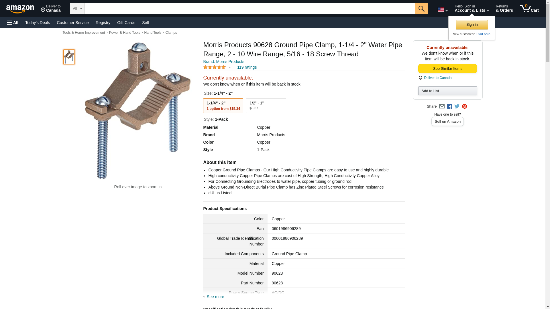 Morris Products 90628 Ground Pipe Clamp, 1-1/4 - 2" Water Pipe Range, 2 - 10 Wire Range, 5/16 - 18 Screw Thread. Copp...