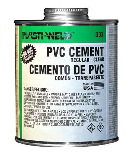 | Feature | Regular Bodied 303 Clear Cement - Regular-Bodied Clear Cement for all grades & types of PVC Pipe and fittings up to 4"\x9d Diameter for Sch. 40 pipe & up to 2"\x9d for Sch. 80 with interference fit |