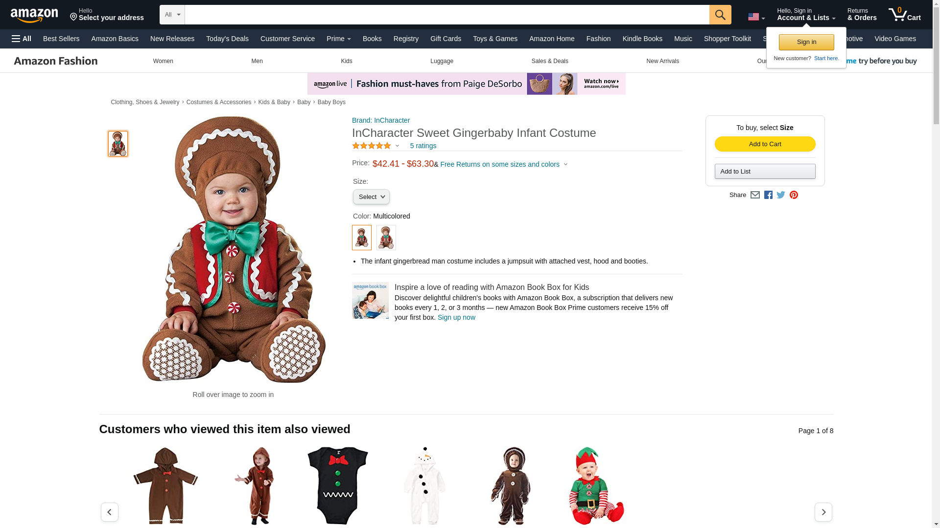 | Feature | The infant gingerbread man costume includes a jumpsuit with attached vest, hood and booties. |