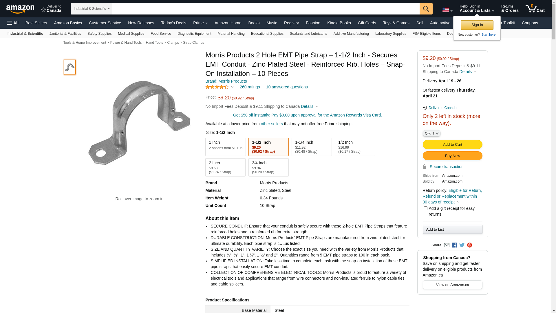 - DURABLE CONSTRUCTION: Morris Products’ EMT Pipe Straps are manufactured from zinc-plated steel for ultimate durability. Each pipe strap is cULus listed.