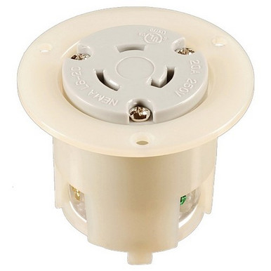 Recessed Twist Lock Female Receptacles 2 Pole 3 Wire 20A 250VAC features include Features. Commonly used with most generators. Rugged Nylon and Polycarbonate Construction resists impact abrasion sunlight chemicals. Grooved Housing for enhanced grip. All contacts are solid onepiece brass for superior conductivity and reduced heat rise. Heavy duty power contacts set in deep pockets to resist damage. Heavy duty brass combo head terminal screws. Clear terminal chamber allows for visual inspection of terminals. Cord strain relief and rubber grommet to seal from environment. Includes grounding screwSpecifications. Type Female. Amps 20. Volts 250. Nema Number L620C