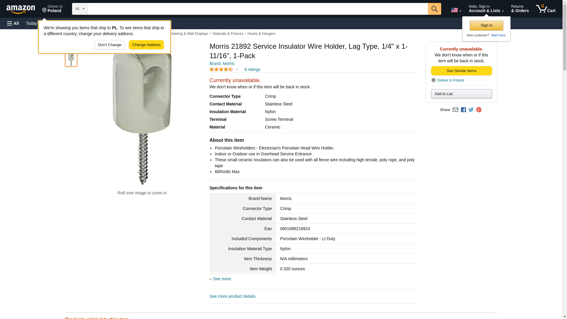 Morris 1/4" x 1-11/16" LLT Service Insul. Wire Holder 21892. ✅Morris authorized distributor ✅. ☎ (800) 884-5767 Mon-Fri 8:00 AM - 5:00 PM ET or order online 24/7
