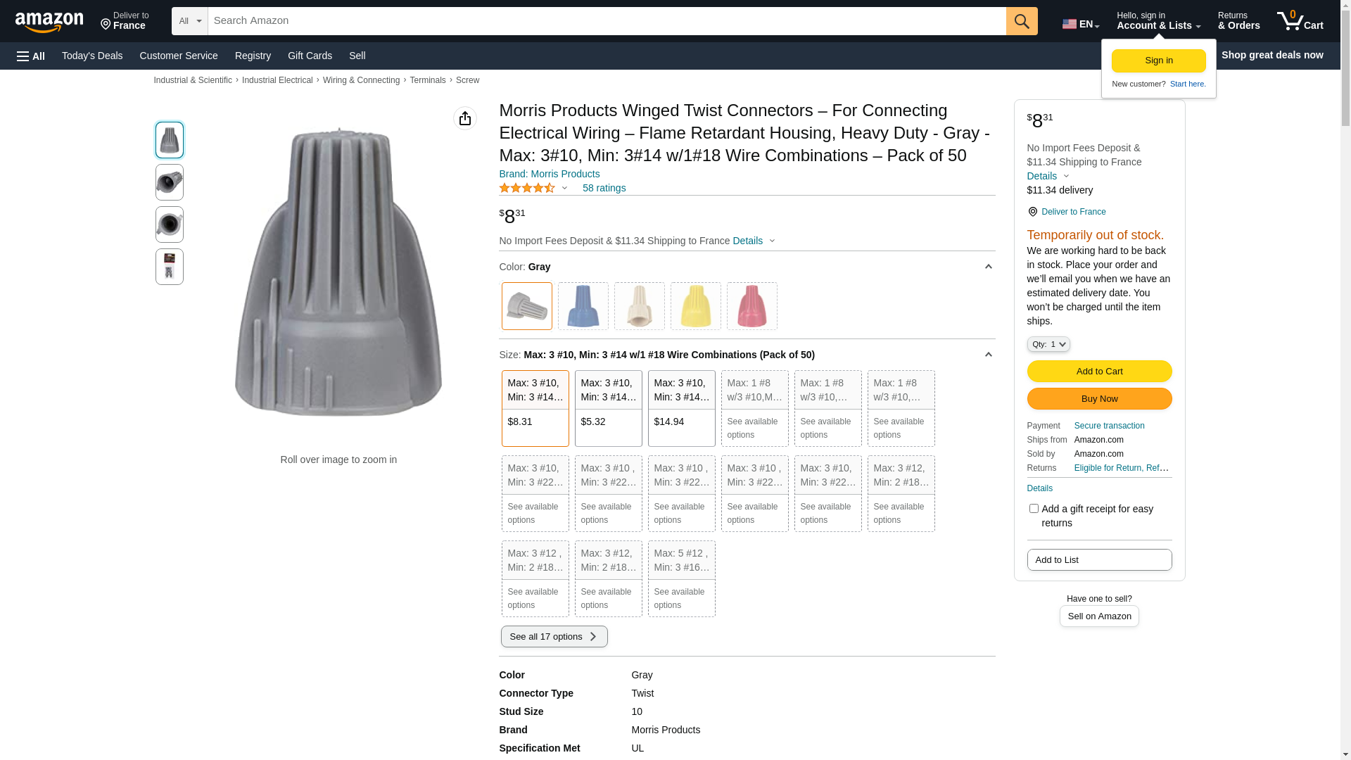 Morris Products Winged Twist Connectors – For Connecting Electrical Wiring – Flame Retardant Housing, Heavy Duty - Gray - Max: 3#10, Min: 3#14 w/1#18 Wire Combinations – Pack of 50