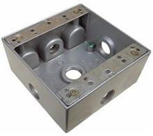 | Feature | Weatherproof Boxes - Two Gang 30.5 Cubic Inch Capacity - 5 Outlet Holes - A universal Weatherproof Powder Coated Aluminum Box |