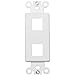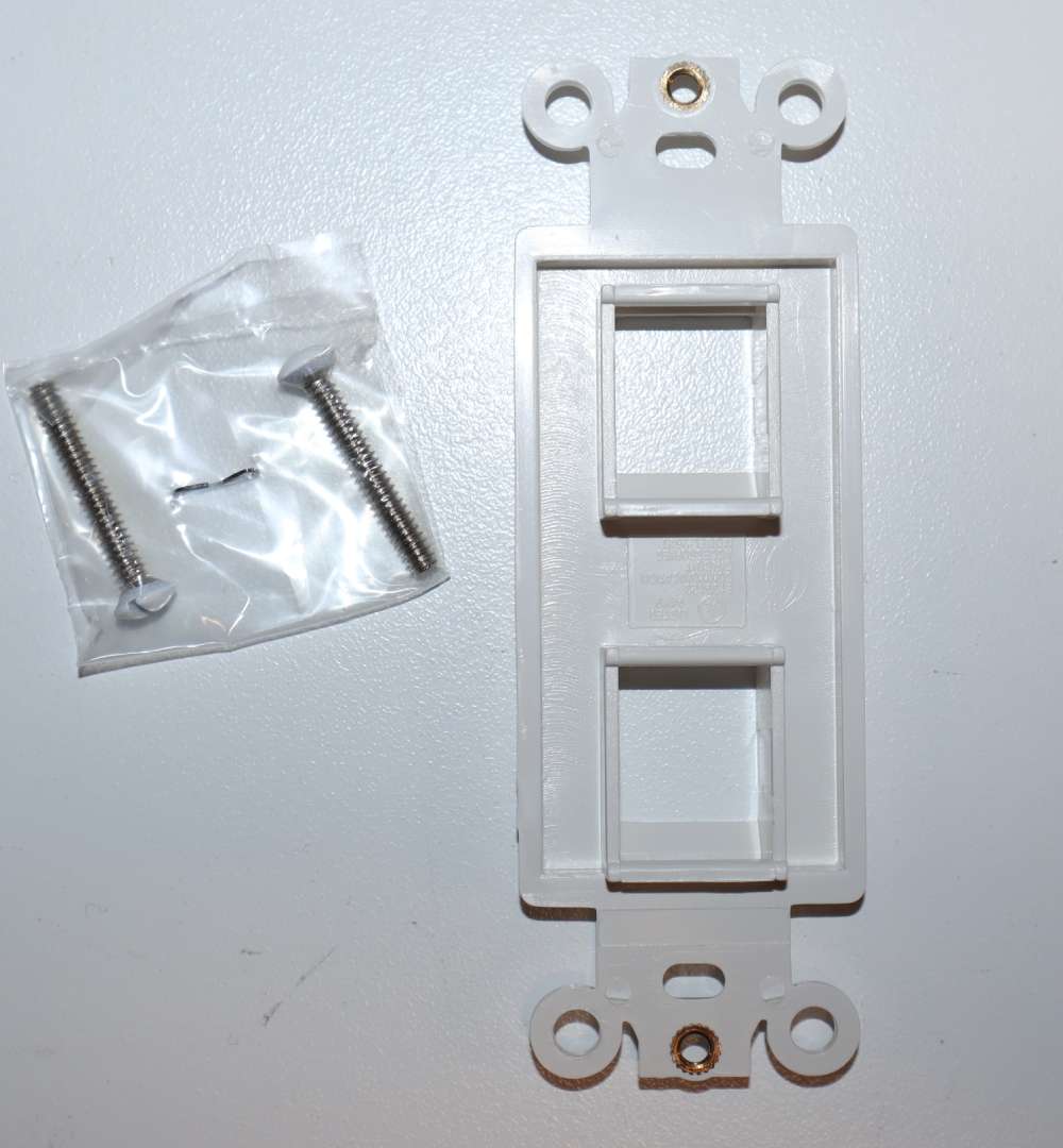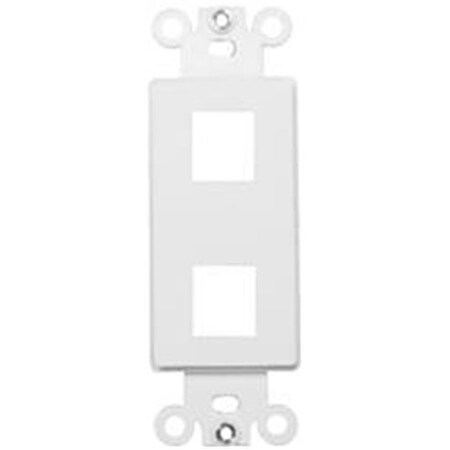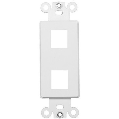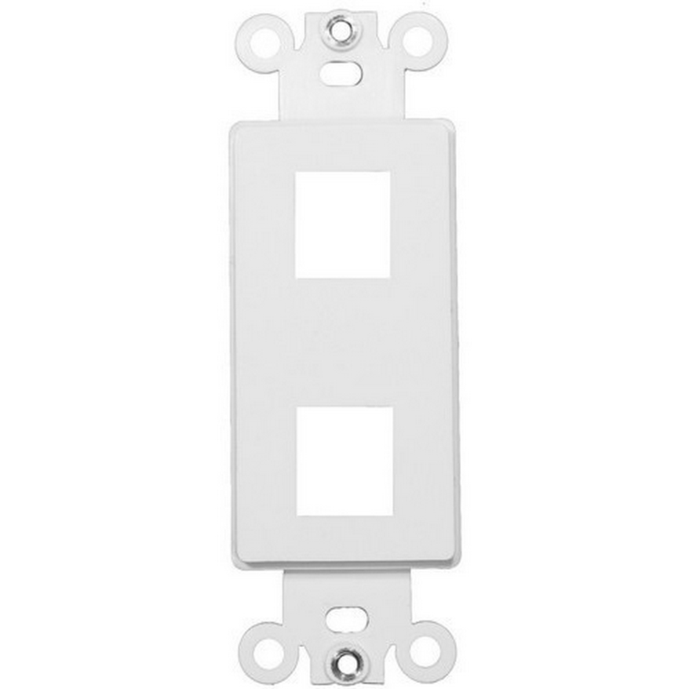White 2-Port Decorative Frame for Keystone Jack Features: Datacomm frame is highly resistant to impact, abrasion, oil, acids and discoloration Ideal for use in high-abuse areas Smooth, easy to clean surface Compatible with all Keystone jacks and Modular Inserts Supplied with color matching painted metal mounting screws Mounting Screws individually wrapped in a small plastic bag to protect plate from scratches Mounts in standard junction boxes Use with Standard Decorative wallplates Specification Grade - meets all current Federal Specifications Decorative wallplate for keystone jacks conforms to NEMA and ANSI standards Made of Polycarbonate Flammability rating UL94V-2 UL Listed