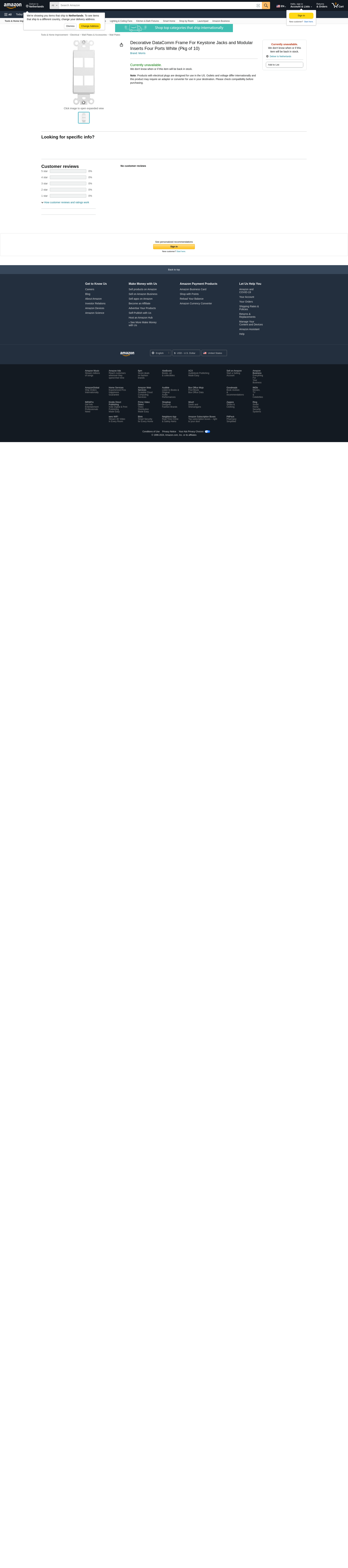 Morris 88118 Decorative DataComm Frame for Keystone Jack and Modular Inserts, 4 Ports, White, 10-Pack