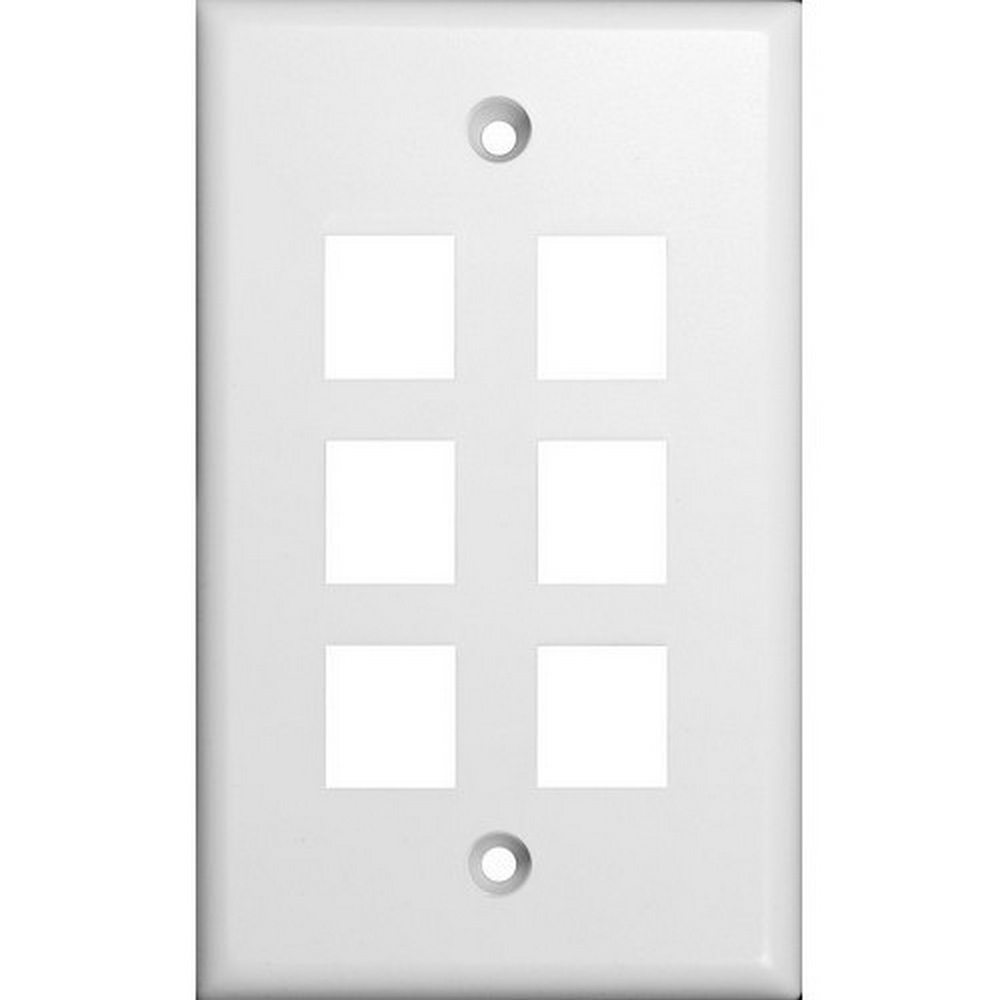 Wallplate For Keystone Jacks & Modular Inserts Six Ports White (Pkg of 10)