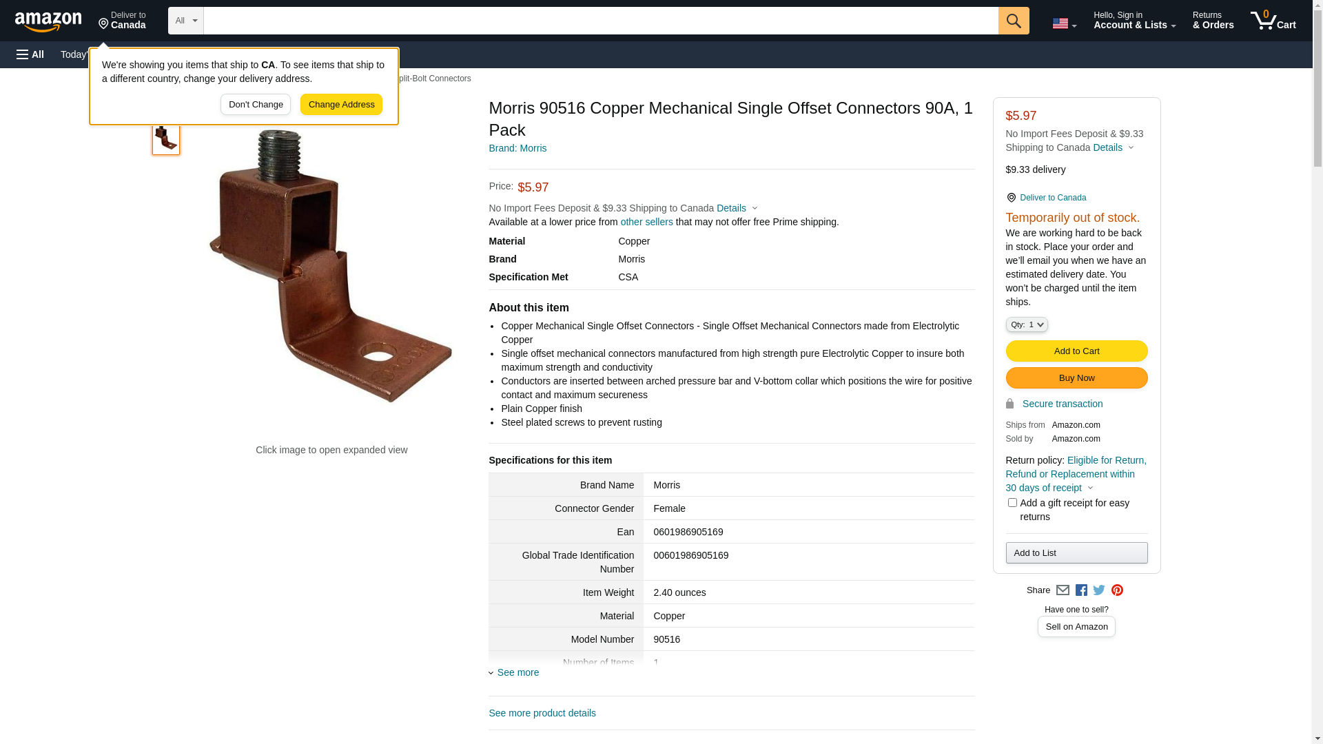 Morris 90A Copper Mechanical Single Offset Connector 90516. ✅Morris authorized distributor ✅. ☎ (800) 884-5767 Mon-Fri 8:00 AM - 5:00 PM ET or order online 24/7