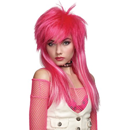 Morris Costumes Hot Pink White Glam Wig Costume