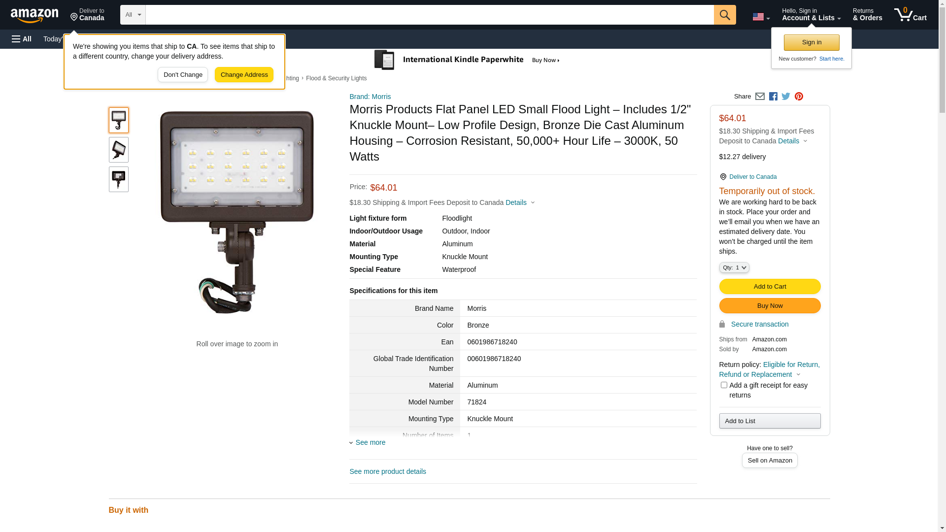 Morris Products Flat Panel LED Small Flood Light – Includes 1/2" Knuckle Mount– Low Profile Design, Bronze Die Cast Aluminum Housing – Corrosion Resistant, 50,000+ Hour Life – 3000K, 50 Watts