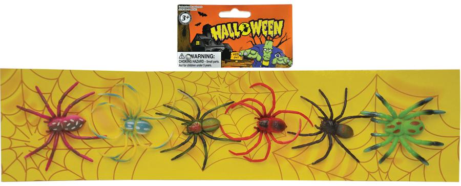 | Feature | Six colorful, 3 inch vinyl spiders with suction cups attached |