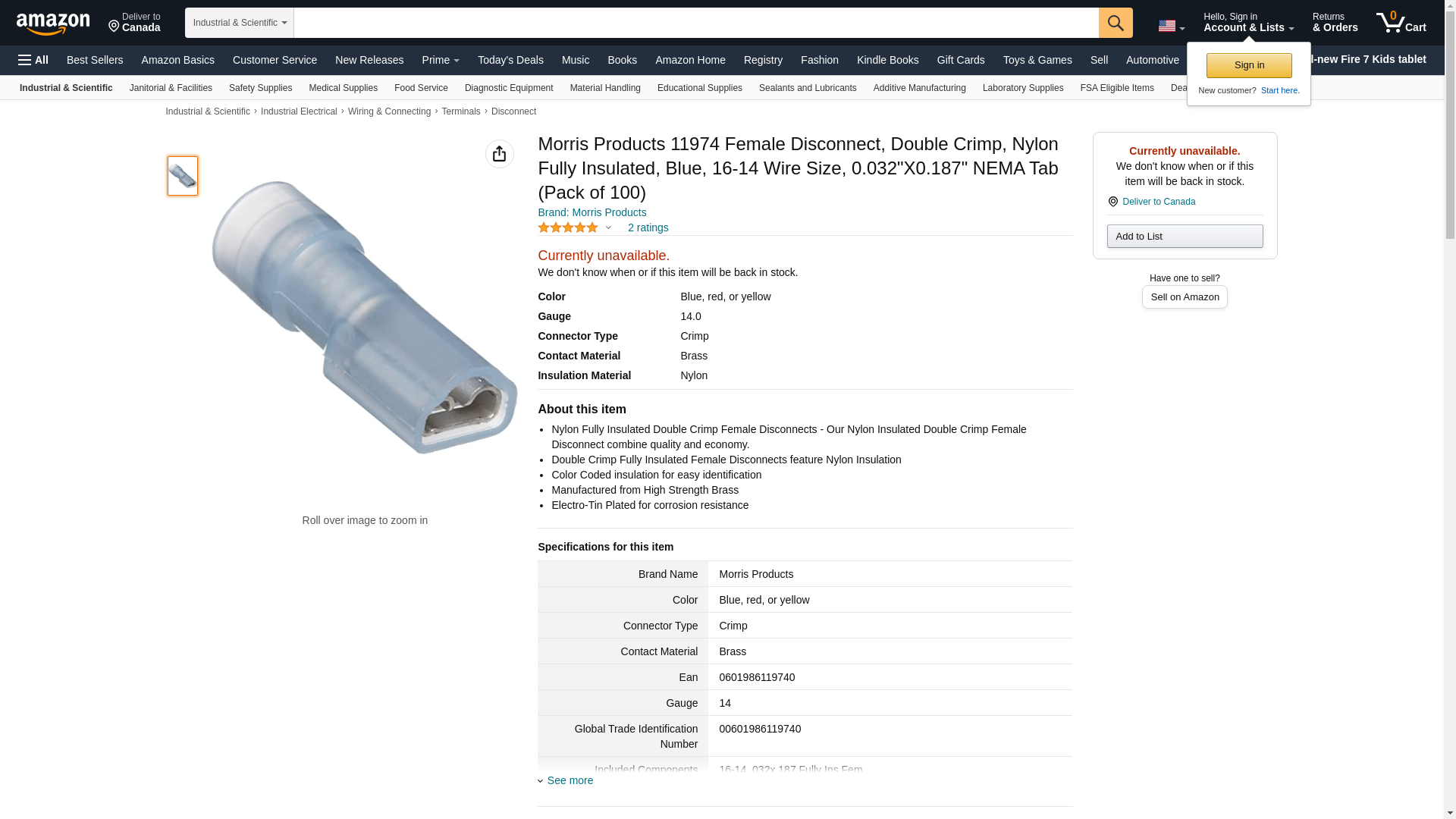 Morris Products 11974 Female Disconnect, Double Crimp, Nylon Fully Insulated, Blue, 16-14 Wire Size, 0.032X0.187 NEMA Tab (Pack of 100) (2)
