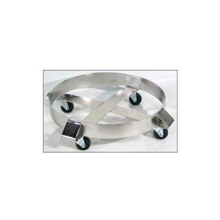Easily move 55-gallon (210 liter) drum or barrel securely. Wide stance base. Has four swivel casters to help move drum. With 3" (7 .62 cm) MORTUF polyolefin wheels. Steel frame with Morse blue paint. Capacity: 1000 Lb (454 kg). Stainless Steel Drum Dolly, made of type 304 stainless steel, is ideal for food or pharmaceutical applications