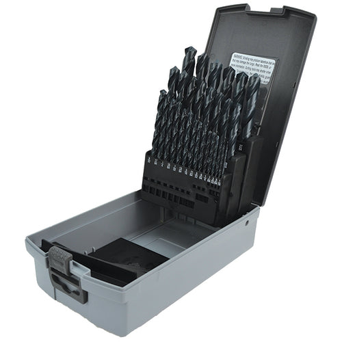 3/8 Reduced Shank Jobber Drill Set1/16 - 1/2 by 64ths 29-Pc. Set Complete with Metal Index(Sizes over 3/8 have 3/8 shank)