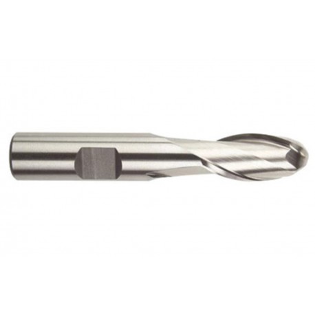 Morse Cutting Tools 43115 Ball Nose Single End Mills, High-Speed Steel, Center Cutting, Bright Finish, 2 Flutes, 3/8" x 3/8" Size