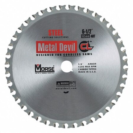 | Feature | Price For: Each Tip Material: Carbide Arbor Hole: 5/8" Primary Saw Application: Metal Item: Circular Saw Blade Plate Thickness: 0.047" Blade Type: Metal Cutting Max. RPM: 4200 Diamond Knockout: No Blade Dia.: 6-1/2" Tooth Grind: M-ATB Kerf: 0.063" Number of Teeth: 40 Application: For Steel Cutting Hook Angle: 0.0 Degrees |