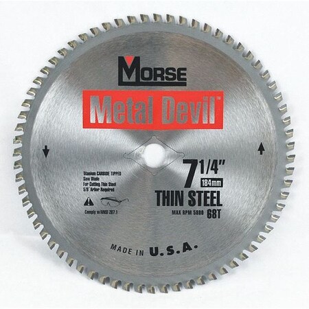 As an Amazon Associate, we earn from qualifying purchases. Crclr Saw Bld, Crbde, 7-1/4 In, 68 Teeth Morse . CSM72568TSC Gallery Attributes Brand name, Manufacturer name, ManufacturerMorse Attribute00Circular Saw Blade Attribute017 1/4 in Attribute02Metal Cutting Attribute03For Cutting Ferrous Materials Including Pipe, Angle Iron, Metal Studs and Conduit Attribute04Metal Attribute05ATB Attribute062-3/8" Attribute070.063" Attribute08Yes Attribute095800 Attribute105/8" Attribute11Carbide Attribute120.047" Attribute1310.0 Degrees Attribute1468 Attribute15Bosch Mfr. No. CS5 /CS10/CS20/1677M/1677MD, Dewalt Mfr. No. DC300K/364/DW368/DW369CSK, Makita Mfr. No. 4131/5057KB/5007FAK/5007FK/5740NB /5377MG/5277NB, Milwaukee Mfr. No. 6390-20/6391-21/6394-21/6477-20 Attribute16, countryOfOriginUnited States AttributeKey00Item AttributeKey01, height_Attrib, width_AttribBlade Dia. AttributeKey02Blade Type AttributeKey03Application AttributeKey04Primary Saw Application AttributeKey05Tooth Grind AttributeKey06, length_AttribCutting Depth AttributeKey07Kerf AttributeKey08Diamond Knockout AttributeKey09Max. RPM AttributeKey10Arbor Hole AttributeKey11Tip Material AttributeKey12Plate Thickness AttributeKey13Hook Angle AttributeKey14Number of Teeth AttributeKey15For Use With AttributeKey16Country of Origin (subject to change) DimensionUnitinch GraingerSku13E872 Extra Product NameCrclr Saw Bld, Crbde, 7-1/4 In, 68 Teeth WeightUnitlbs diameter, height, width7.25 extendedLead10 extendedQty-2 length2.375 moq, multiple, tierMinQty11 MPNCSM72568TSC qtyInStock0 SKUG4302033 tierPrice147.90 urlhttps://www.zoro.com/i/G4302033 Distributor offers SellerSKUMOQIn stockMultiplePrices ZoroG4302033111 @ $47.90