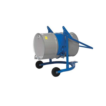 Raise, Transport, Rotate, Tilt and Drain Heavy Drum. Carries the full weight of drum, Rotate drum 360 degrees. Fingertip operated locks secure tilt angle of raised drum. Lock drum in vertical position to avoid spills. Lock drum in horizontal position to pour. When unlocked, the drum may be turned end-over-end to agitate contents or tipped and held manually at any angle. Simple to move and steer on its 8" Mortuf (polyolefin) roller bearing wheels and 4" swivel caster, Capacity: 800 Lb. (363 kg). Shipped partly disassembled to save freight cost.