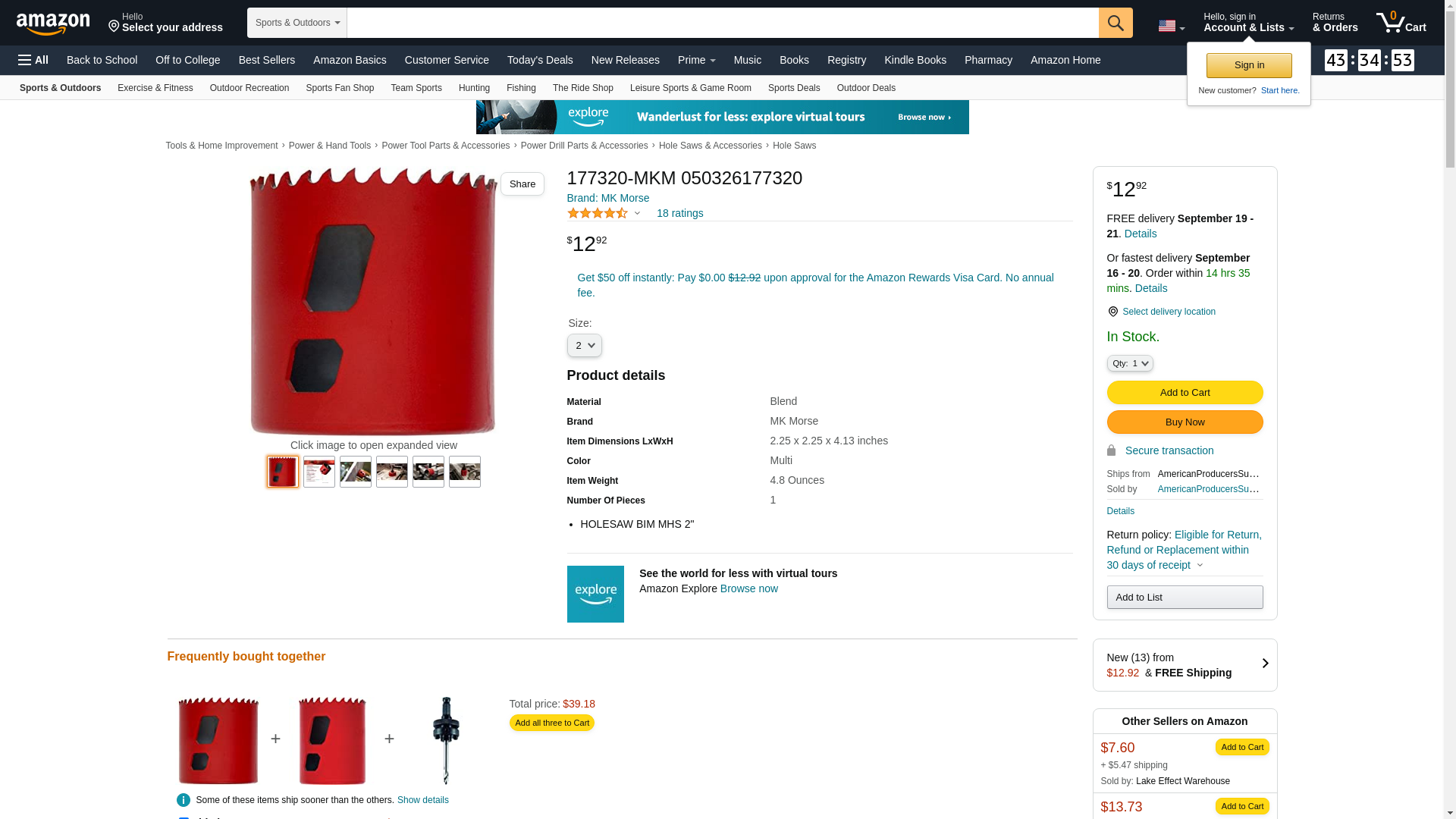 Morse MHS32 Bi-Metal Hole Saw, 2" Diameter, 1 Piece