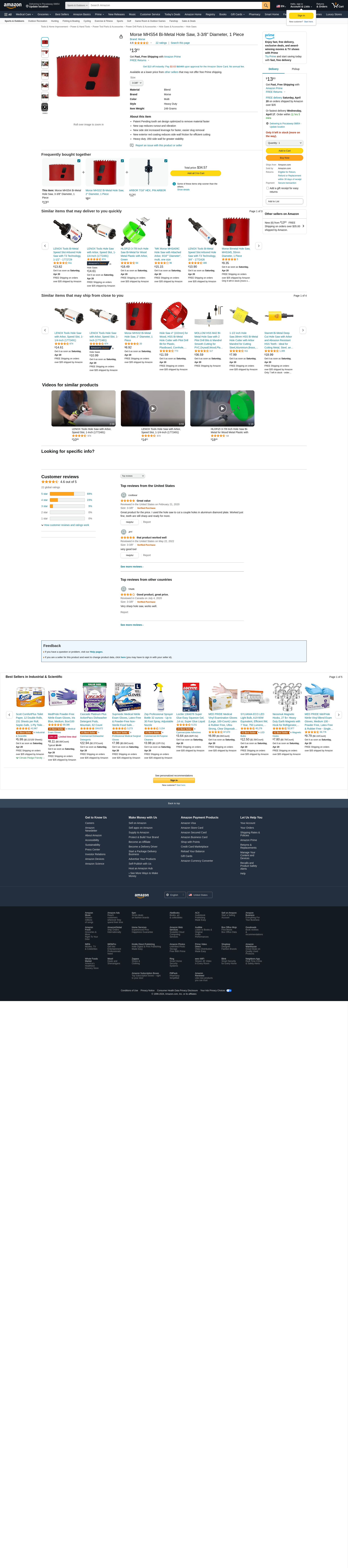 Morse MHS54 Bi-Metal Hole Saw, 3-3/8" Diameter, 1 Piece