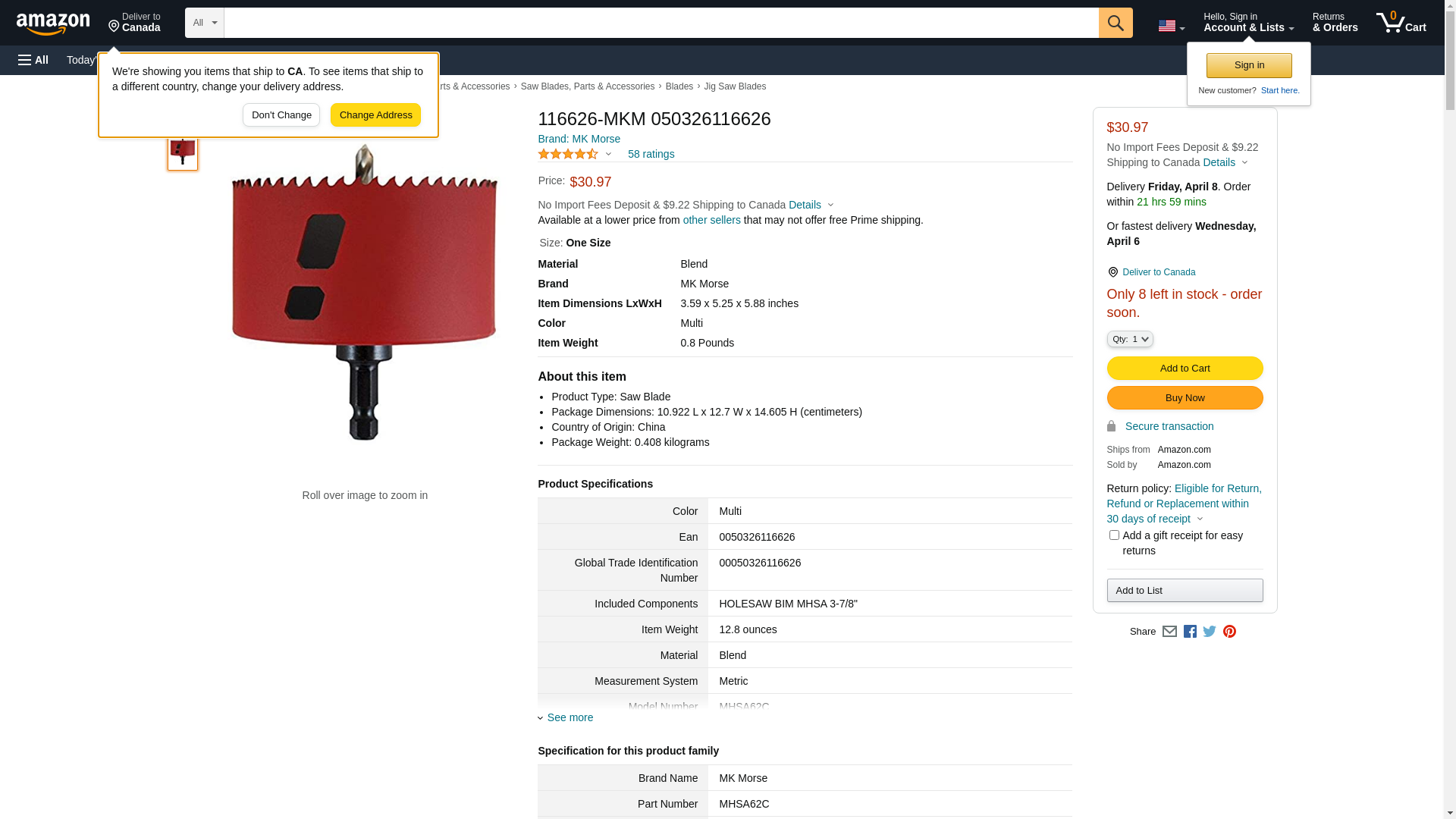 Morse MHSA62C Bimetal Hole Saw, 3-7/8" Diameter, Carded