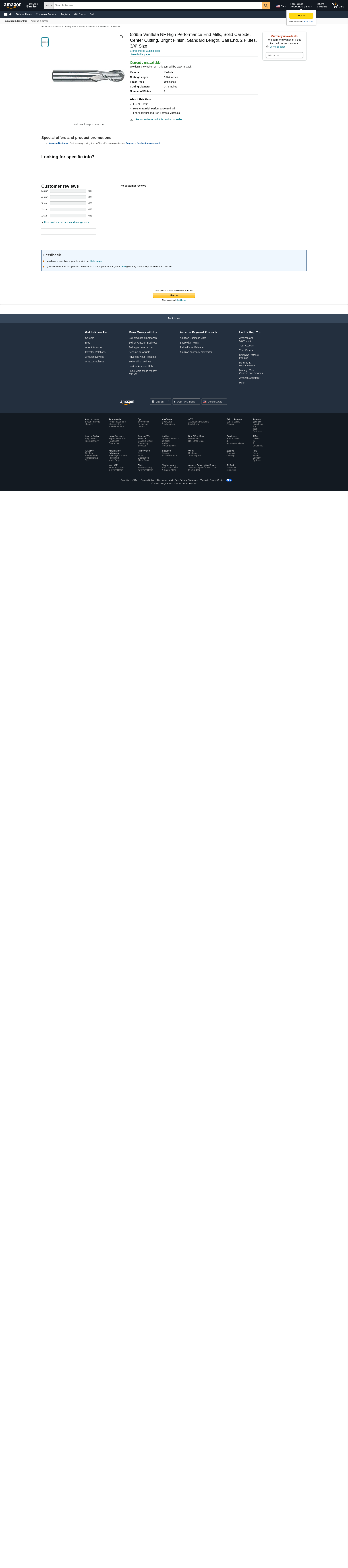 Morse Cutting Tools 52955 Variflute NF High Performance End Mills, Solid Carbide, Center Cutting, Bright Finish, Standard Length, Ball End, 2 Flutes, 3/4" Size