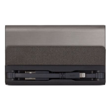 Moshi IonBank 10K Portable Battery with Built-in Cables, Lightning and USB, Ultra-slim, Fast-charging, Vegan Leather and Aluminum Construction