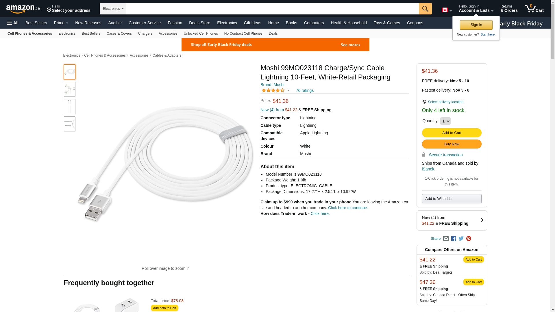 | Feature | "Moshi 3m (9.84') USB Cable with Lightning Connector - HandyStrap Cable Manager - Moshi Lifetime Limited Warranty (2 Year + Lifetime Limited with Registration)" |