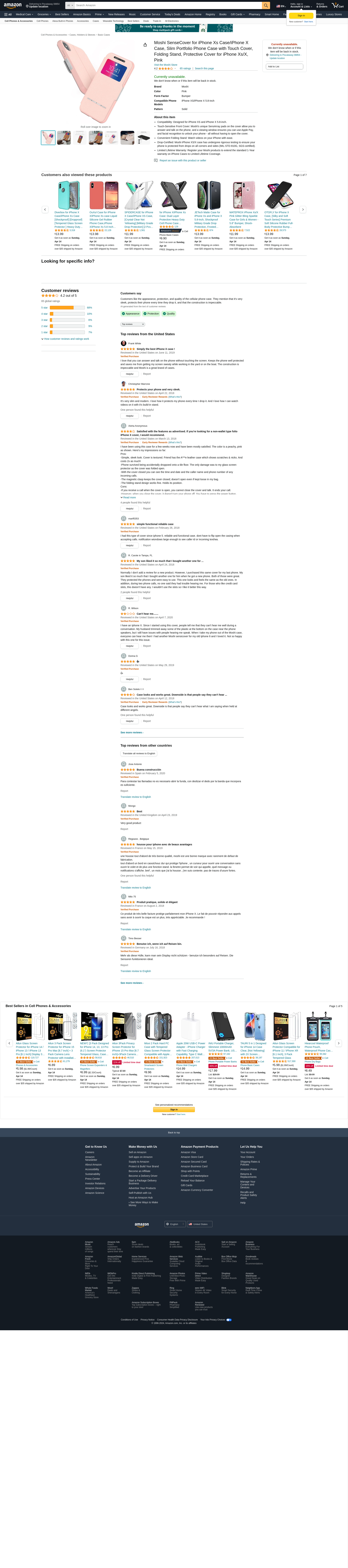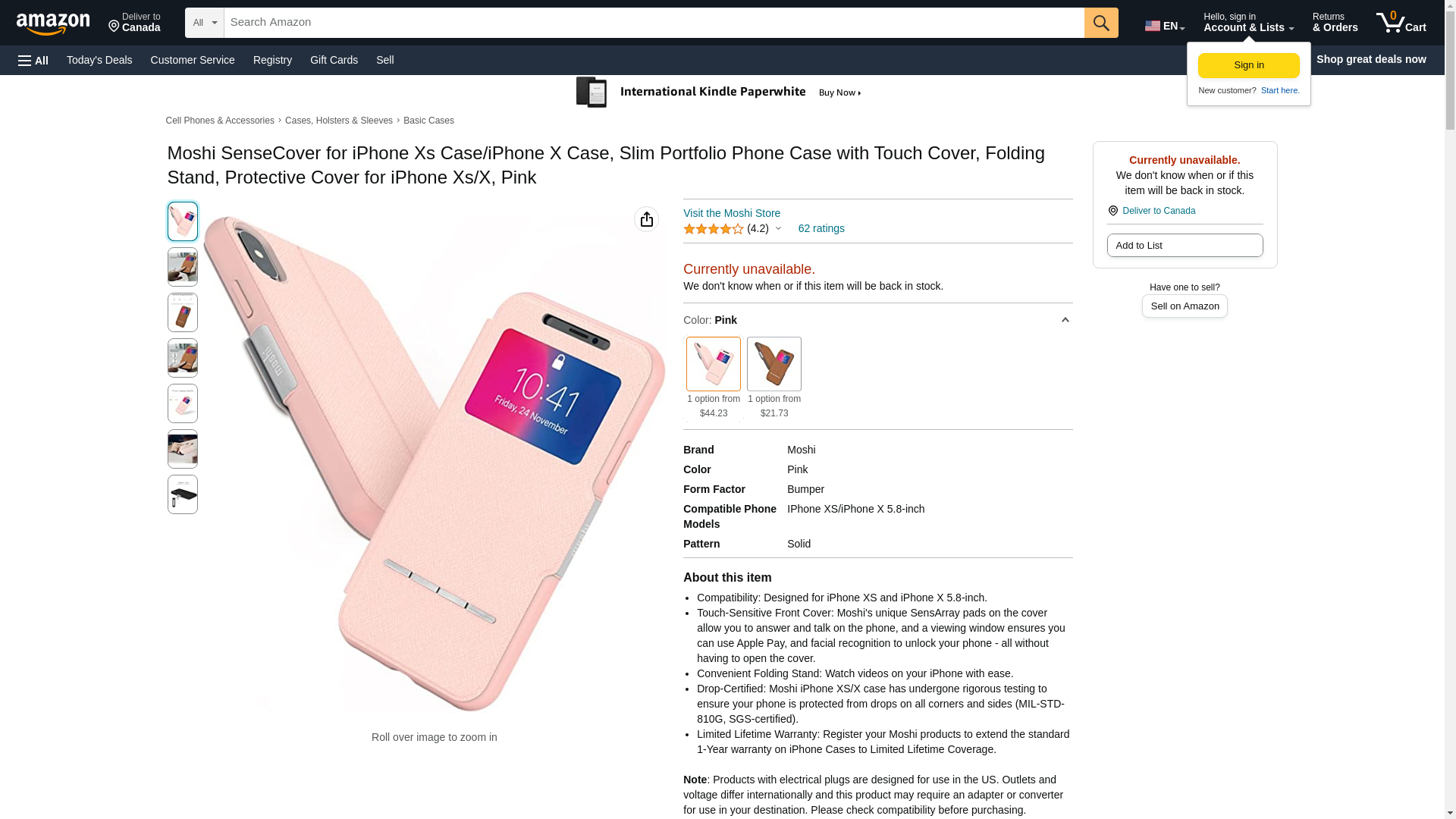 Moshi 99MO072309 SenseCover for iPhone Xs/iPhone X - Slim Portfolio case with Touch Cover (Pink)