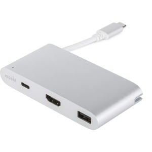 Moshi USB-C Hub, 3-in-1 Multiport Adapter with HDMI 4K Output, USB-C Fast-Charge Up to 60W, USB 3.1 (Gen 1) Data Transfer, with Folding Cable Design - Silver