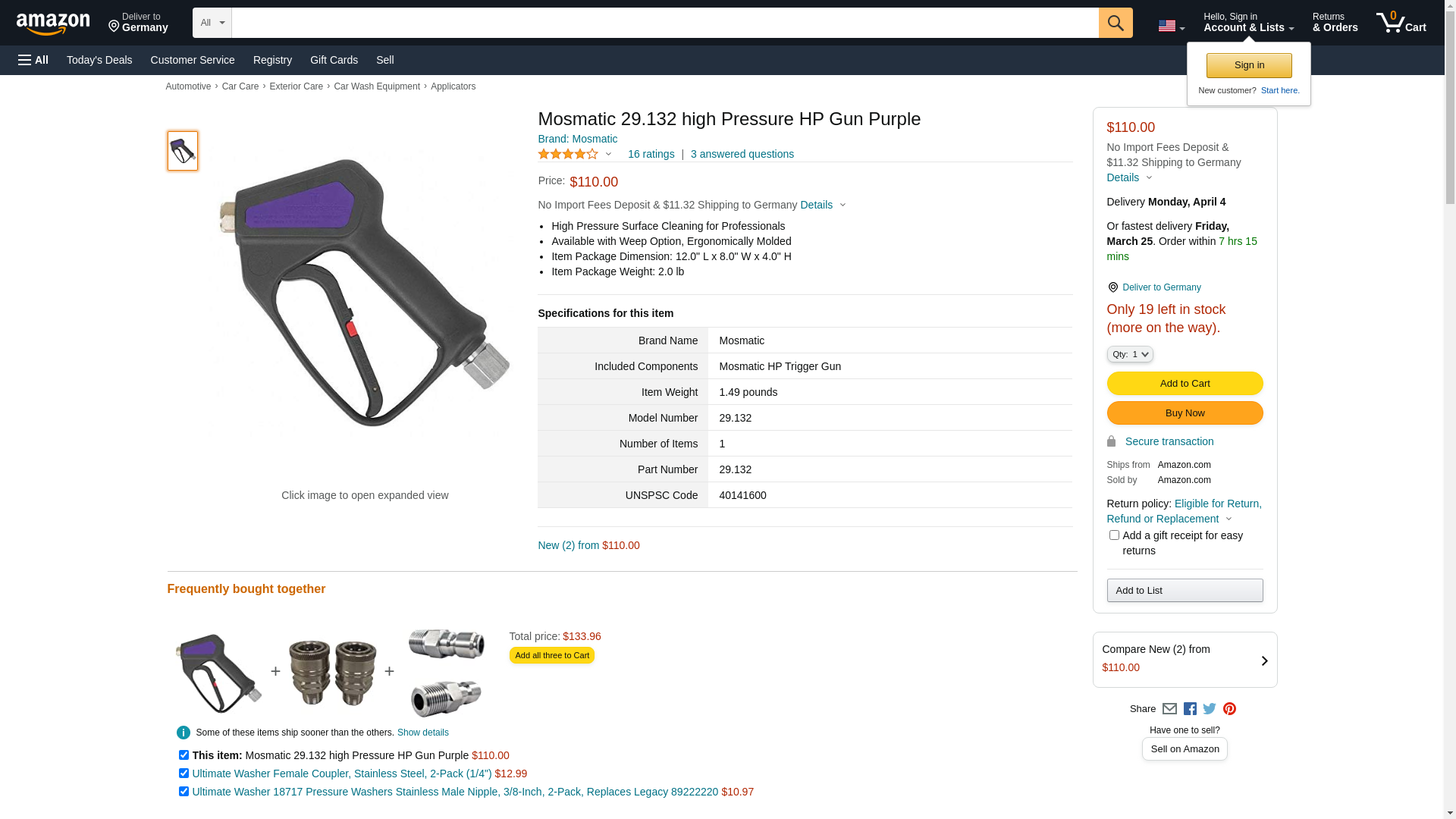 Mosmatic 29.132 high Pressure HP Gun Purple