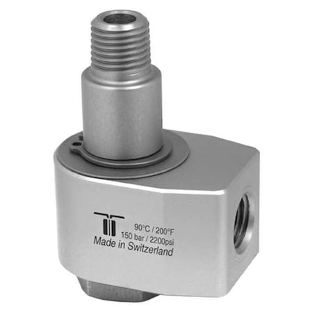Rotary Union, Fitting Material Brass, Internal Fitting Material Stainless Steel, Fitting Material Finish Nickel-Plated, Internal Fitting Material Grade 304, Fitting Type Elbow, Flow Direction Single-Flow, Maximum Operating Temperature 200 Degrees F, Maximum Speed 30 RPM, Minimum Operating Temperature Not Applicable, Number of Passages 1, Overall Length 1.77 in, Pipe Size Not Applicable, Rotating Shaft Connection Type NPTM, Rotating Shaft Thread Size 3/8 in, Seal Material Nitrile Rubber