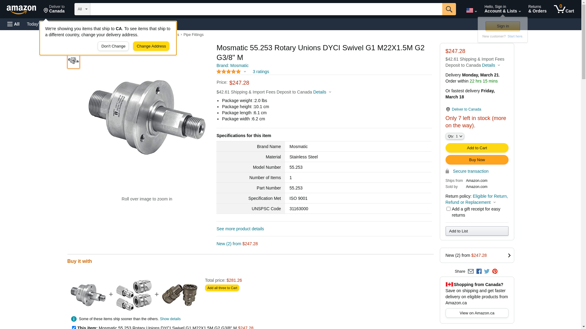 Mosmatic 55.253 Rotary Unions DYCI Swivel G1 M22X1.5M G2 G3/8" M