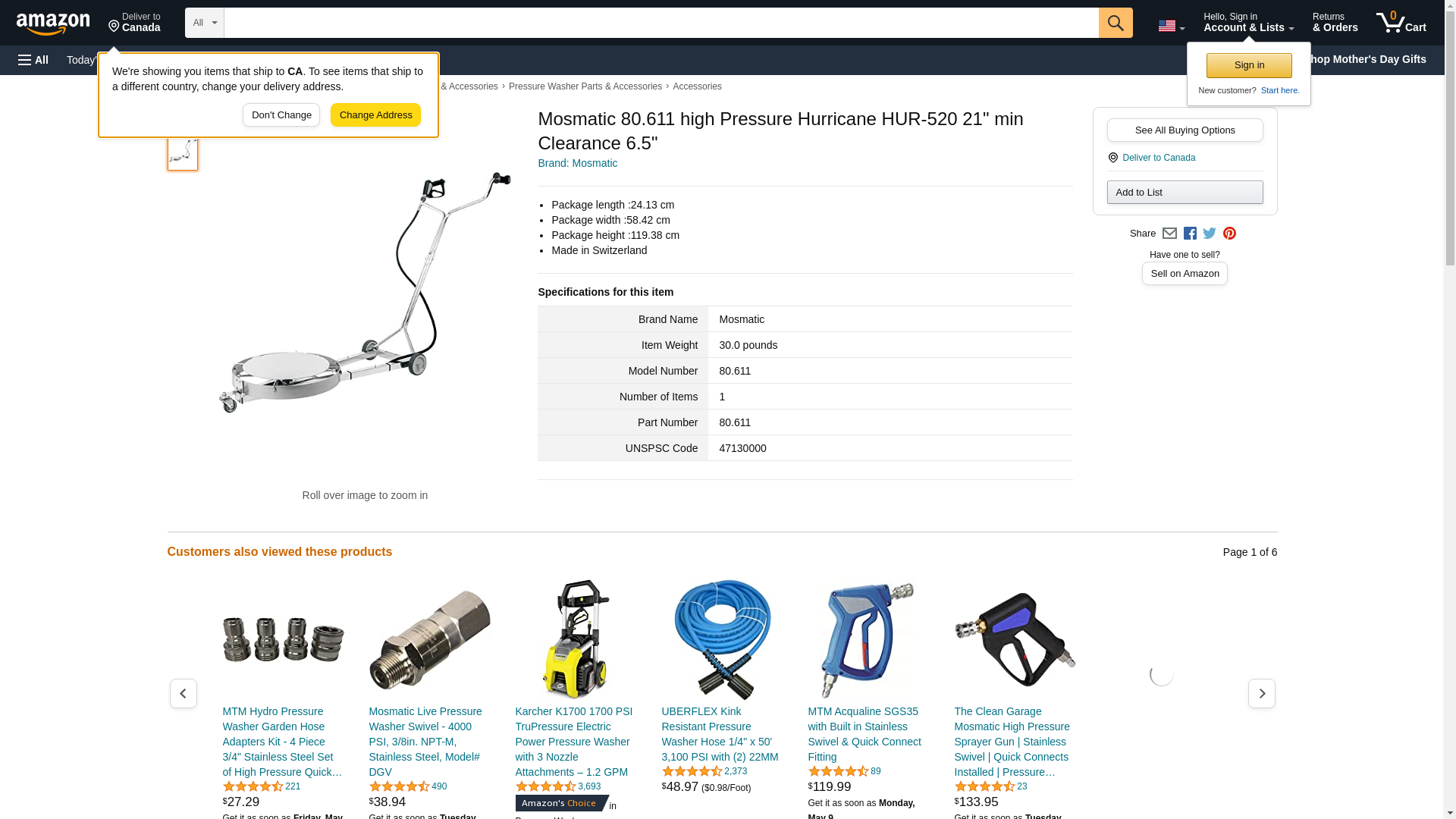 Mosmatic 80.611 high Pressure Hurricane HUR-520 21" min Clearance 6.5"