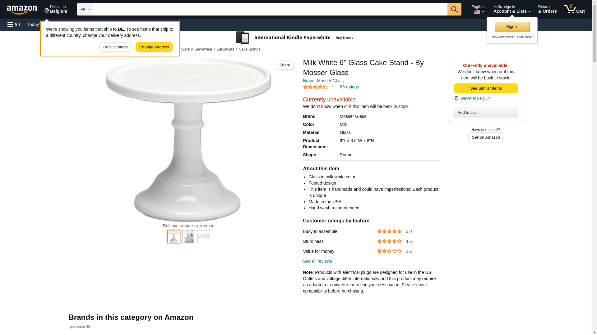 Display desserts and baked goods in style with the six-inch cake plate from Mosser Glass. Handmade in the USA, this cake plate features a timeless milk white color. It is ideal for serving cupcakes, donuts, cookies, muffins, cakes, pies, and more. Each cake stand is made in Ohio at Mosser Glass, a family-owned company that uses decades-old glass molds and fun, vibrant colors to give new life to classic designs. This item is handmade and could have imperfections. Each product is unique.<p>6" diameter x 5-1/2" H