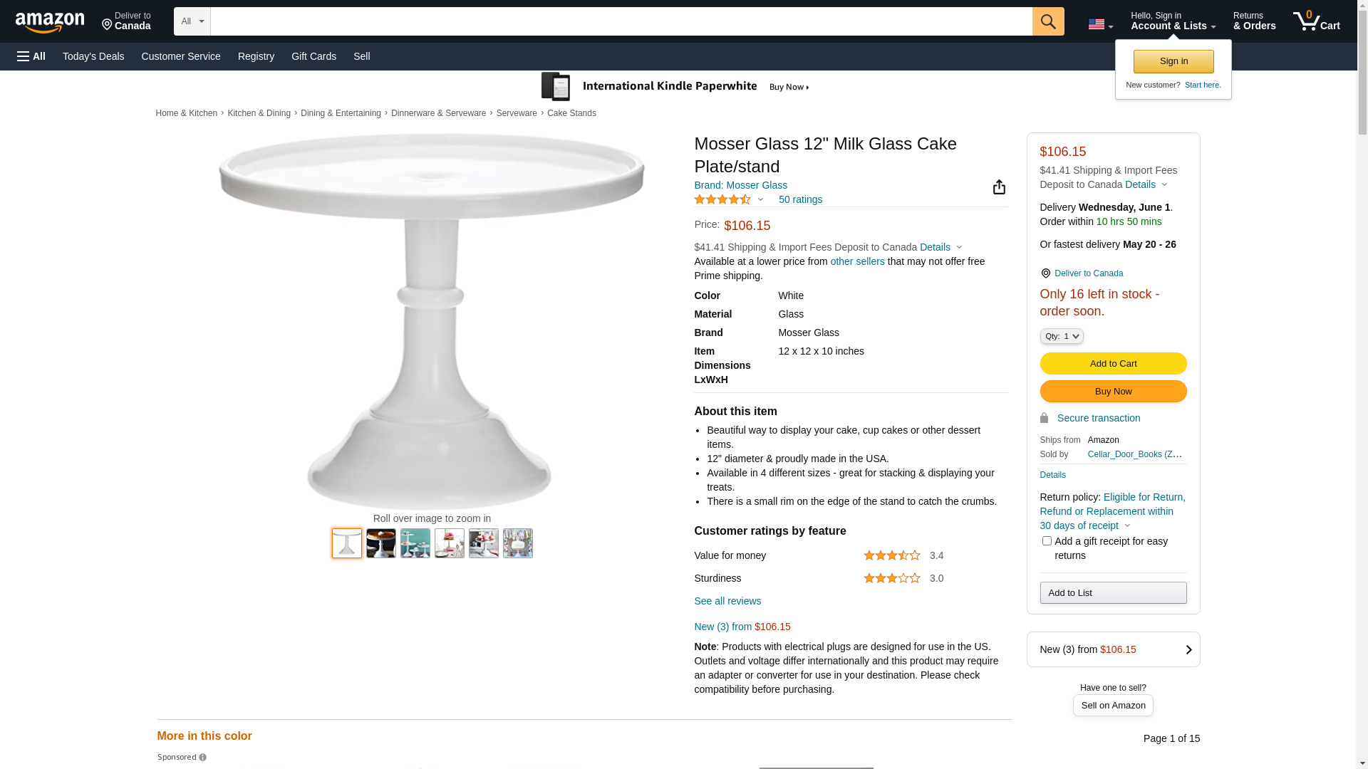Mosser Glass 12" Milk Glass Cake Plate/stand