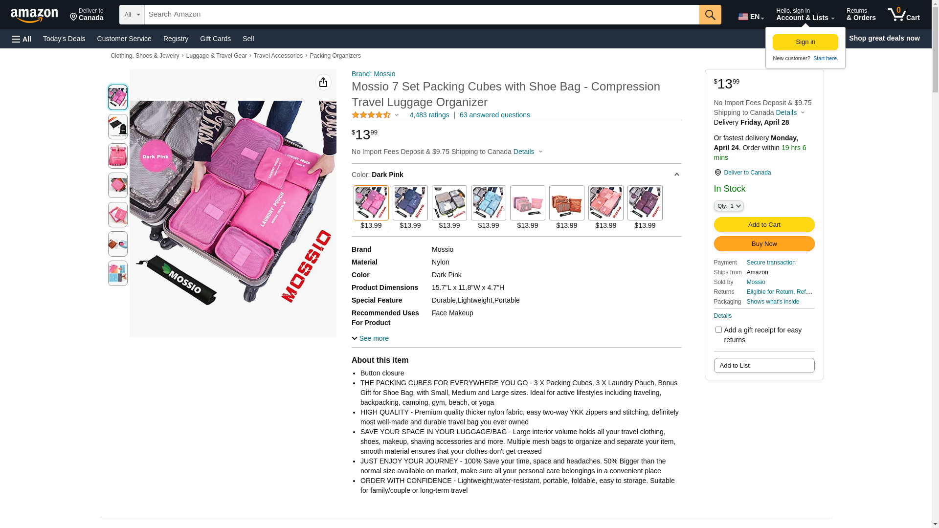 Travel Bag,Mossio 7pcs Luggage Pouch Durable Compact Trip Gears Dark Pink