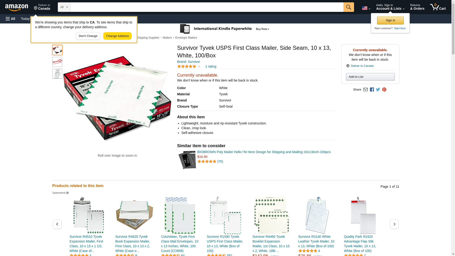 Survivor Tyvek USPS First Class Mailer, Side Seam, 10 x 13, White, 100/Box