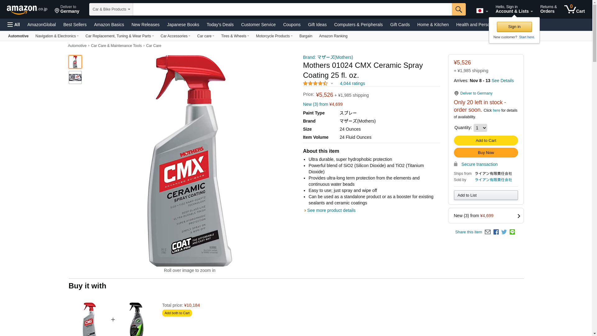 Mothers 01024 CMX Ceramic Spray Coating