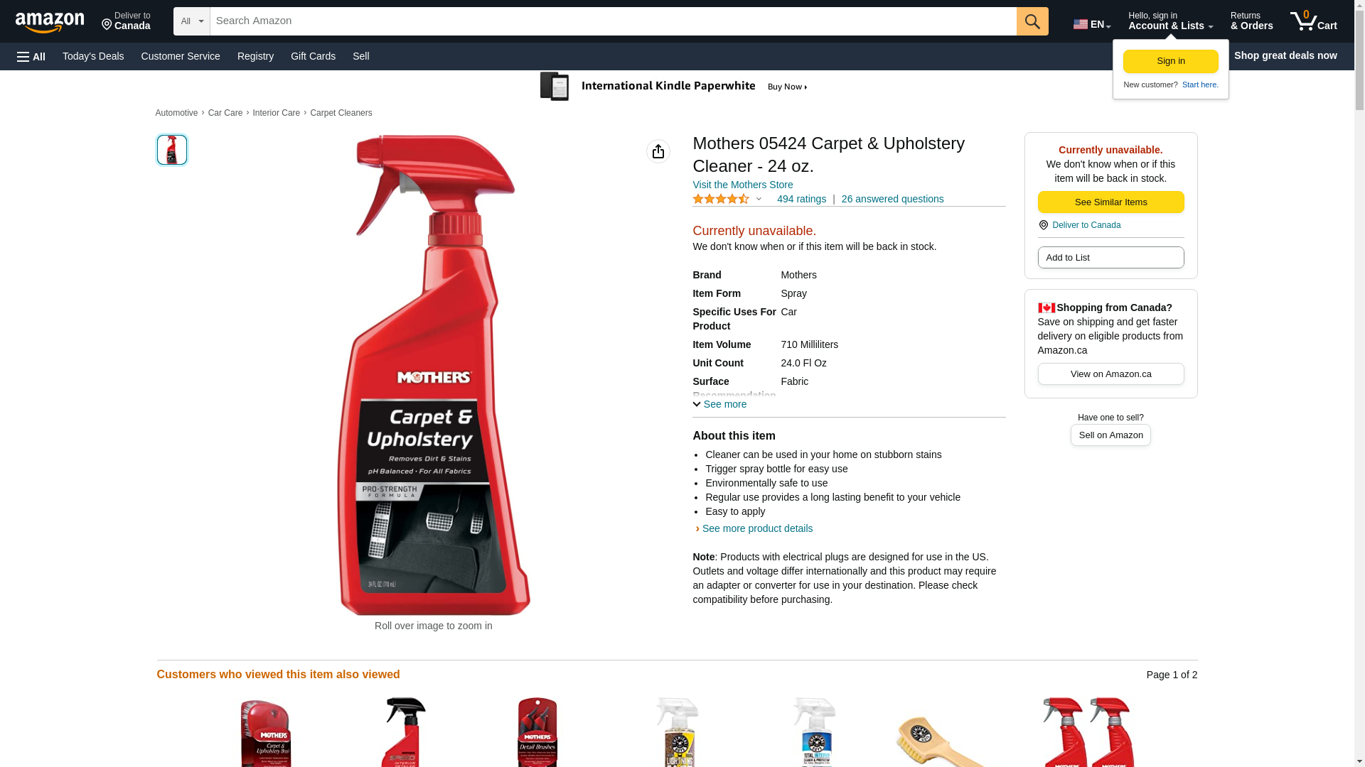 Mothers 05424 Carpet & Upholstery Cleaner - 24 oz.
