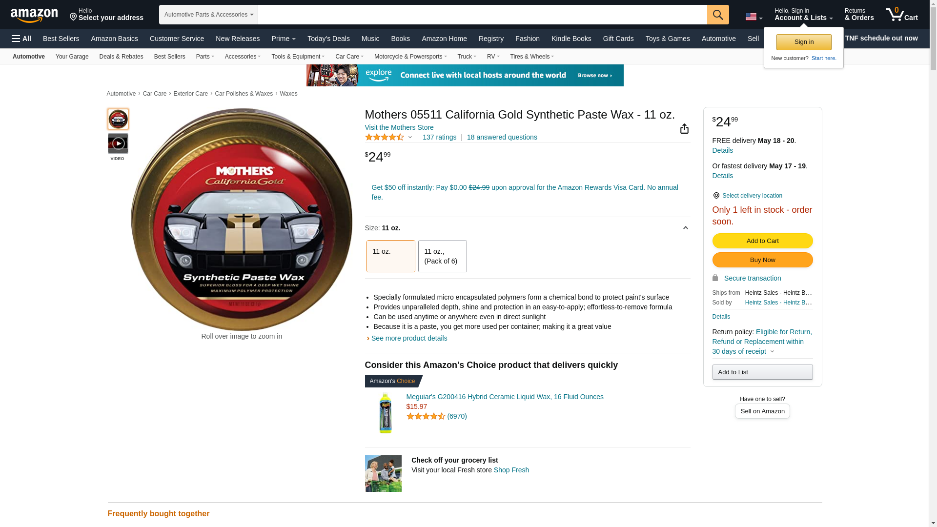 Provides unparalleled depth, shine and protection in an easy-to-apply, effortless-to-remove formula. Our specially formulated microencapsulated polymers form a chemical bond to protect your paint?s surface. While ultra-fine polishes bring out the gloss and luster you?ve come to expect from Mothers.
